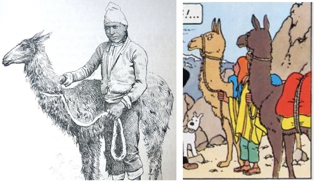 Eén keer zijn de lama’s de redding van Kuifje, Haddock en Zorrino. Na de lawine zijn de lama’s gaan lopen. Haddock gaat hen achterna om hen te vangen en dan ziet hij dat Kuifje en Zorrino belaagd worden door het groepje indianen waar ze het al eerder mee aan de stok hadden. Roepend en tierend loopt Haddock snel naar beneden om zijn metgezellen te verwittigen en dan gebeurt er dit. De lama’s zijn er dus indirect de oorzaak van dat ze voorgoed verlost zijn van hun achtervolgers.