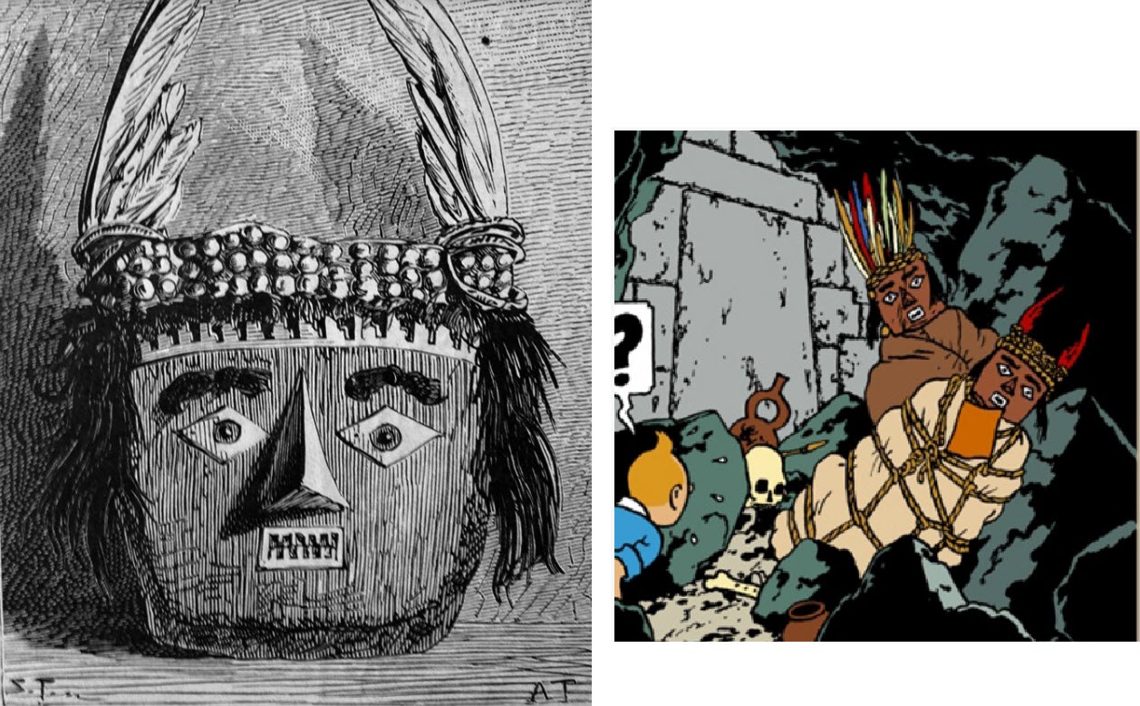 Hergé heeft voor zijn album “de zonnetempel” onder meer gebruik gemaakt van een boek van Charles Wiener “Pérou et Bolivie” , verschenen bij de Editions Hachette in 1880. En de talloze tekeningen in het boek van Wiener hebben Hergé duidelijk geïnspireerd. Hieronder tonen we een aantal opvallende gelijkenissen.
