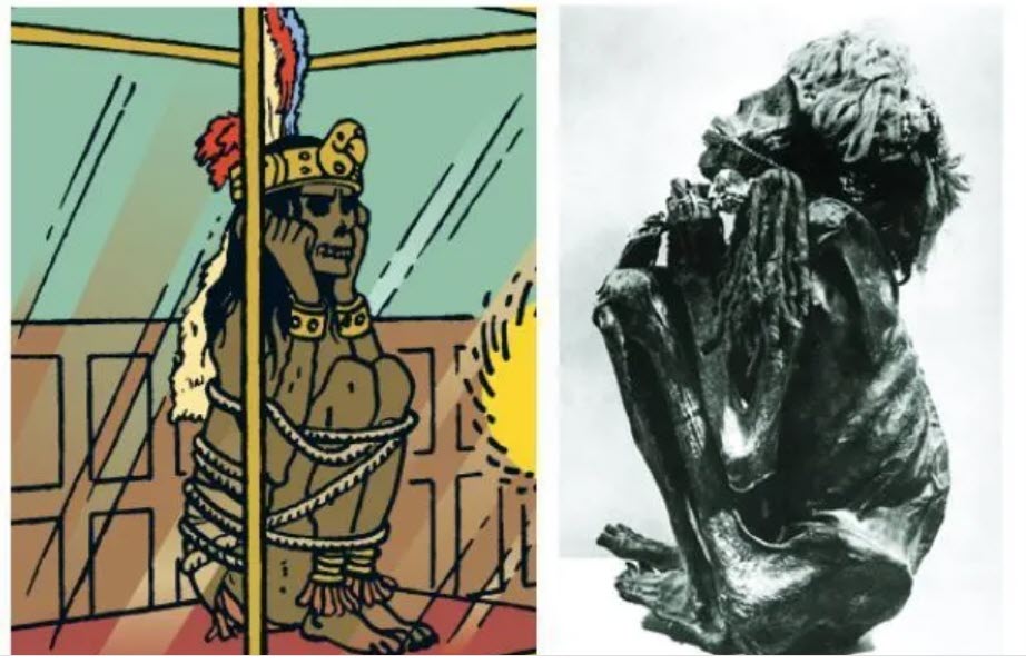 Raskar Kapak is de naam van de Inca, waarvan de mummie is meegebracht door de expeditie aan het begin van “de zeven kristallen bollen”. Kuifje, kapitein Haddock en Zonnebloem zien deze mummie als ze professor Bergamot gaan bezoeken. De houding van de mummie is gebaseerd op een echte Inca mummie. In het midden van de 19e eeuw reisde baron Popelaire de Terloo doorheen Chili en Peru. Vandaar brengt hij drie mummies mee en één geeft hij aan het museum van de Cinquantenaire in Brussel. In de jaren 1930 woont Hergé in de buurt van het museum van de Cinquantenaire dat hij geregeld bezoekt. Daar doet hij de nodige inspiratie op, onder meer voor de mummie van Raskar Kapak.